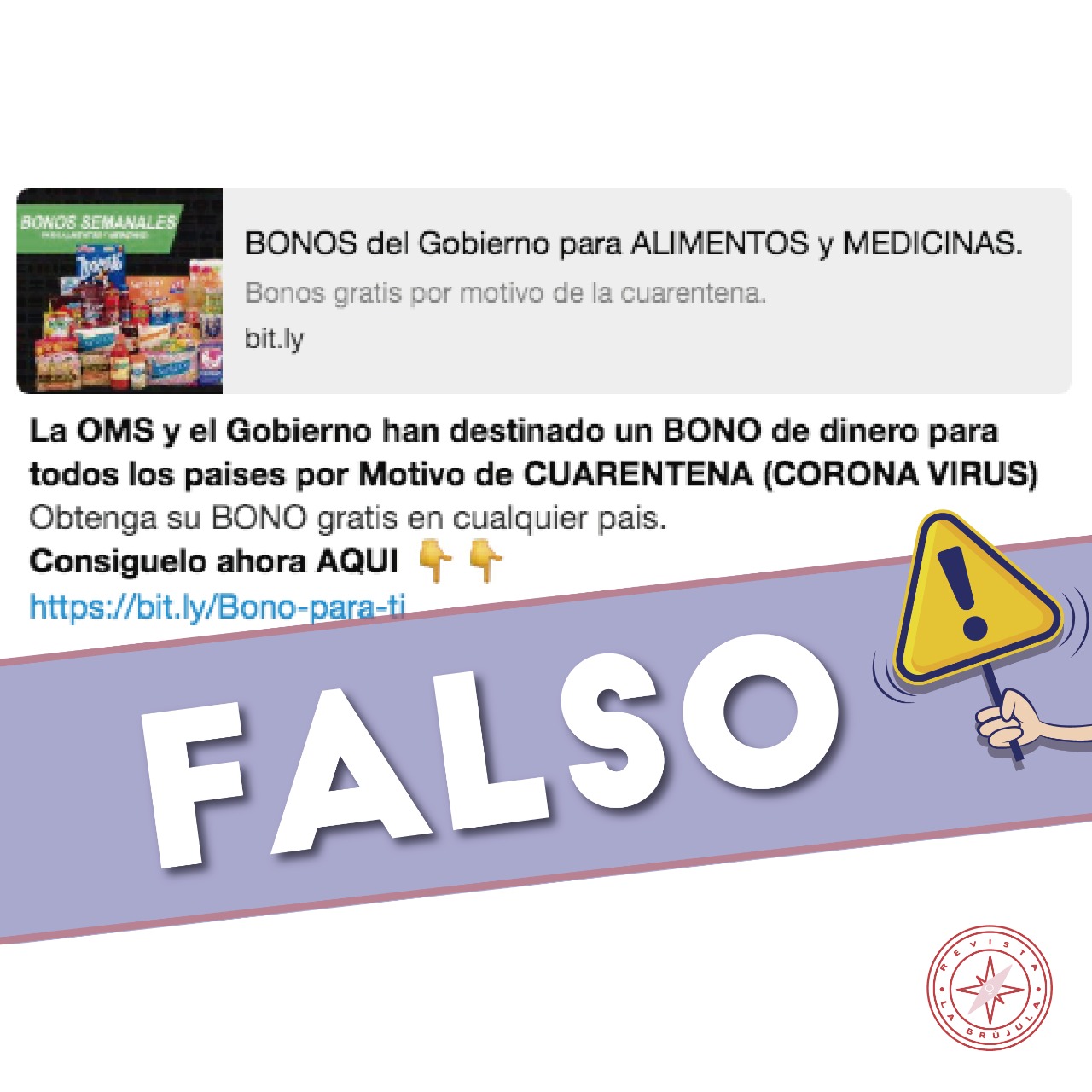 La Brújula verificó la información sobre el mensaje de la red social en la cual se pudo constatar que la supuesta ayuda procedía de una página falsa. La Unidad Cibernética de la Guardia Estatal de Seguridad e Investigación desmintió la entrega del bono asegurando que el fin era realizar estafa tipo phising.