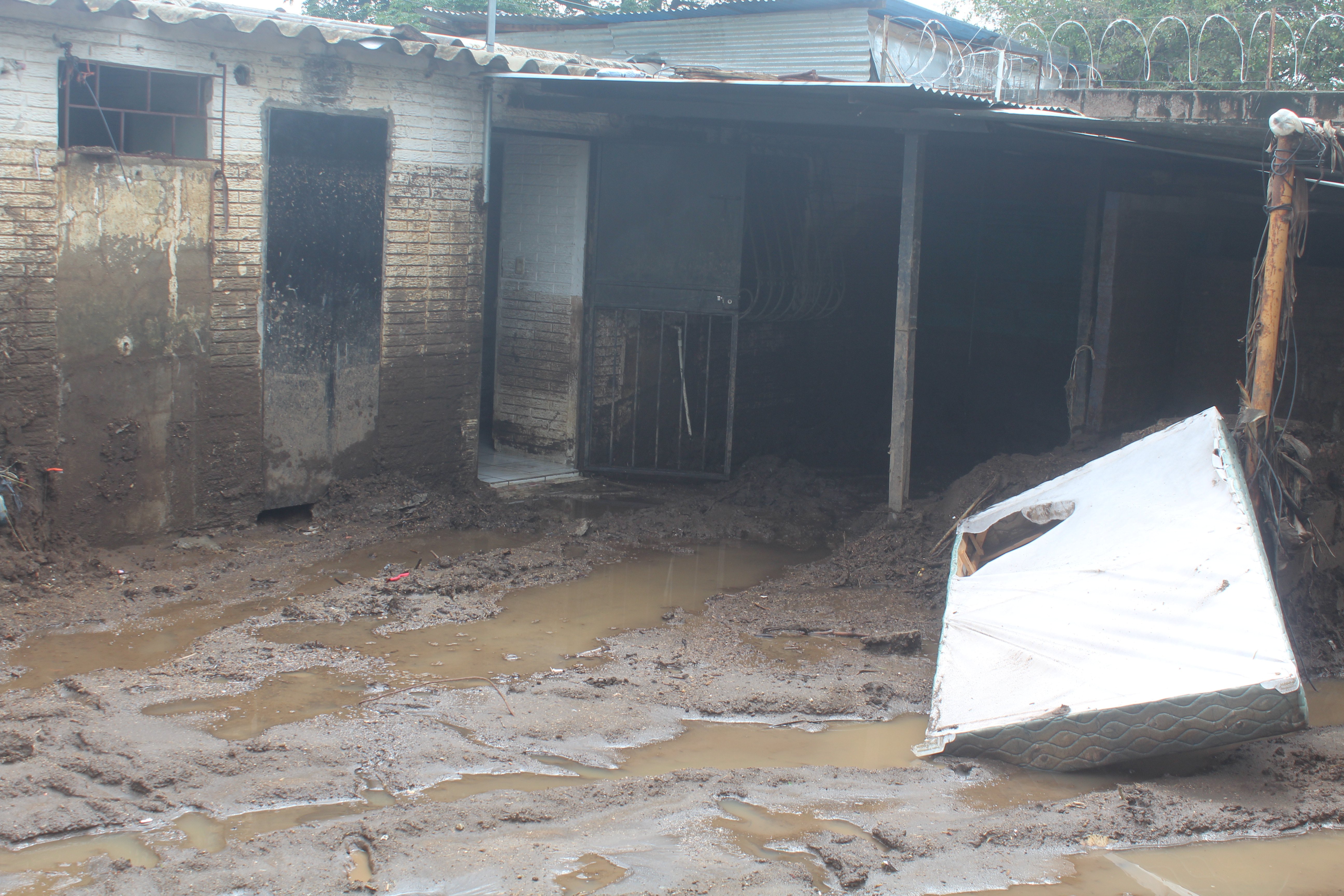 Personas han ayudado a las familias a levantar el lodo y escombros. Una de ellas puso a disposición su maquinaria y pagaron al operario para limpiar. Foto/Fátima Cruz.