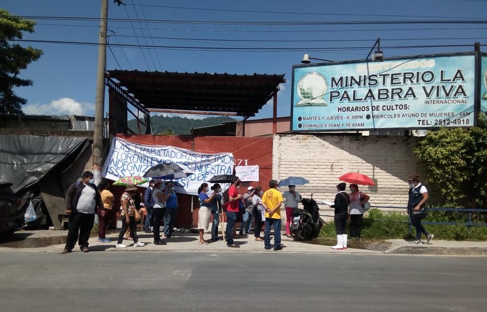 Trabajadoras de la Industrias Florenzi S.A. de C.V. protestan en las afueras de la empresa por el incumplimiento de salarios, cuotas adeudas e indemnizaciones. Según manifestan 210 personas son las afectadas debido a que dicha empresa se ha declarado en quiebra.