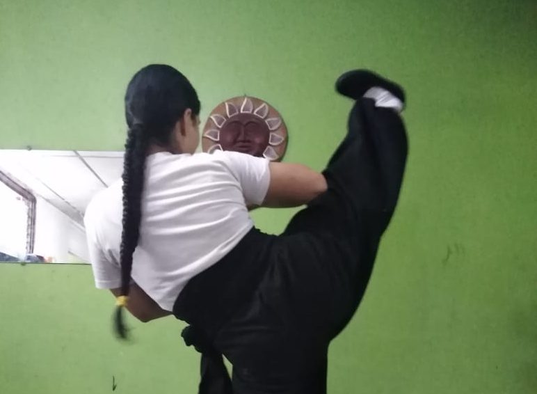 A mis 14 años comencé a entrenar kung fu, pues desde pequeña quise ir a una escuela de artes marciales y así fue. Mucha gente decía que era un deporte muy pesado para una niña pero no le di importancia ya que es lo que me gusta hacer y no dejé que nadie me detuviera en lo que quería hacer. Mi papá y mi mamá siempre me apoyaron con el sueño de practicar artes marciales.