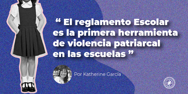El reglamento Escolar es la primera herramienta de violencia patriarcal en las escuelas. Ha sido una tortura para muchas niñas, puede sonar un poco cuestionable para algunas quizás, pero para otras que tenemos anécdotas, miedos, e incluso traumas por maestros, maestras, y directores que nos humillaron a los 8 años por el largo de la falda, por ejemplo.