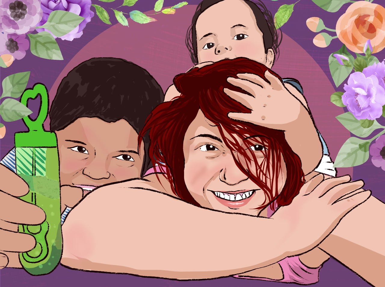 “El feminismo le ha ayudado bastante con el tema de ser madre, la ha empoderado, en su autoestima también. Es un efecto dominó en la crianza de los niños”, afirma Andrea Ortíz, hermana de Alexia.