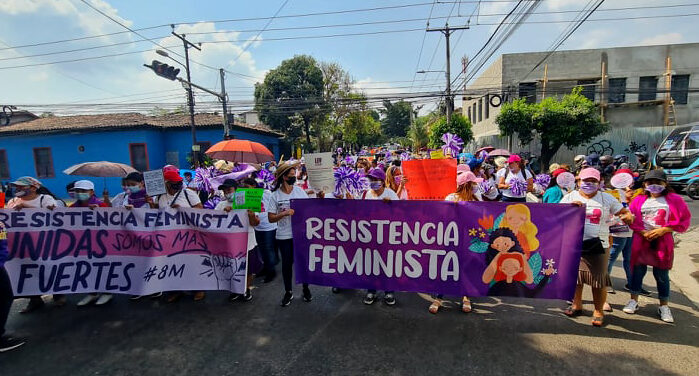 Organizaciones aglutinadas en la Resistencia Feminista marcharon este día exigiendo una vida libre de violencia para las mujeres, la garantía de sus derechos, una reforma fiscal inclusiva, justicia para las desaparecidas, asimismo manifestaron su preocupación ante la posible derogación de la Ley Integral para una vida libre de violencia para las mujeres (LEIV). Foto La Brújula/Reina Ponce.