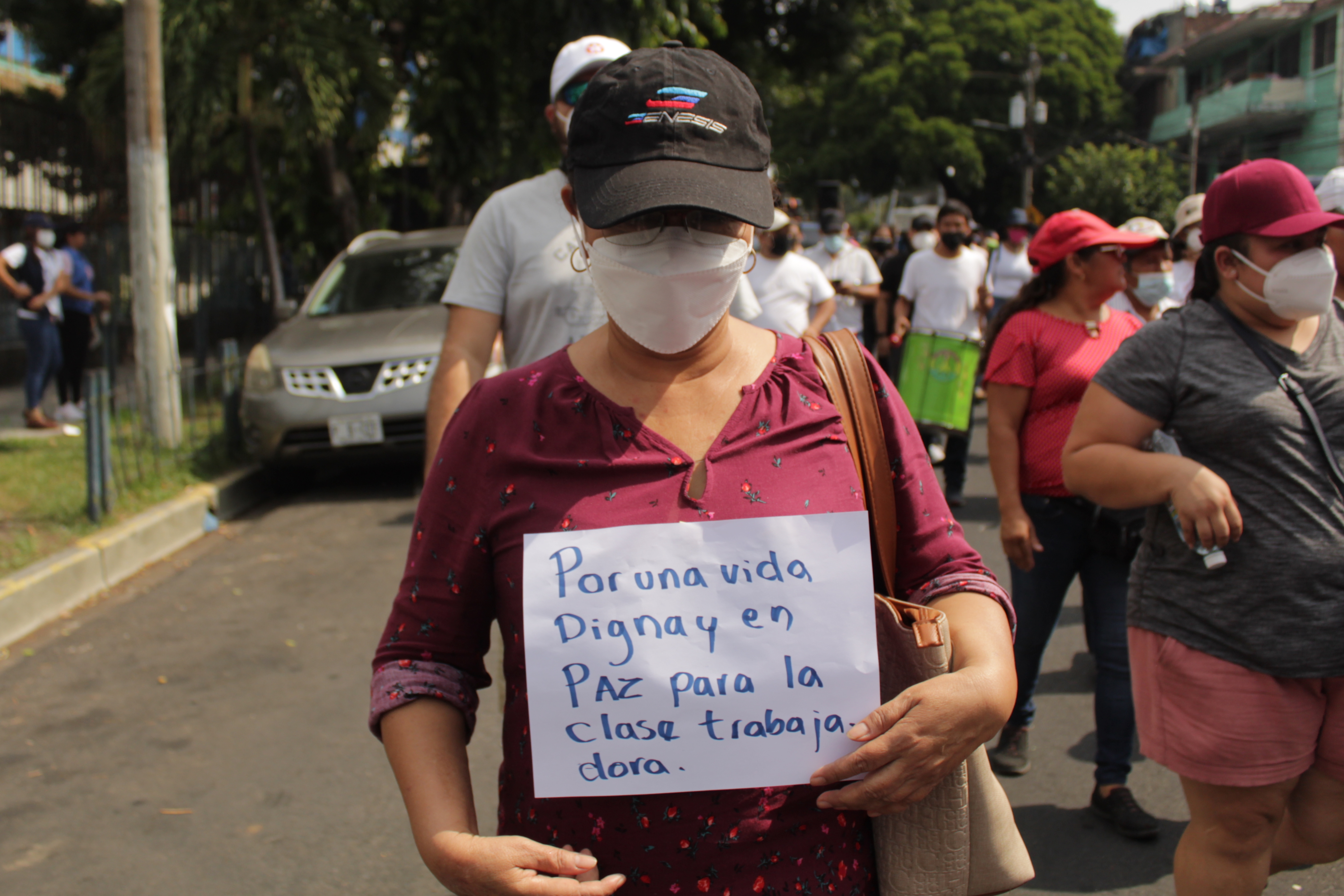 «Las demandas son para que el Estado ratifique el convenio de la OIT y reconozca el trabajo del hogar y se pueda remunerar», dijo Edith Benitez, de Las Mélidas. Agregó que, el actual Regimen de Excepción solo afecta más a las mujeres que están en trabajos informales. Pues ahora tiene que lidiar con el acoso sexual de estos cuerpos de seguridad.