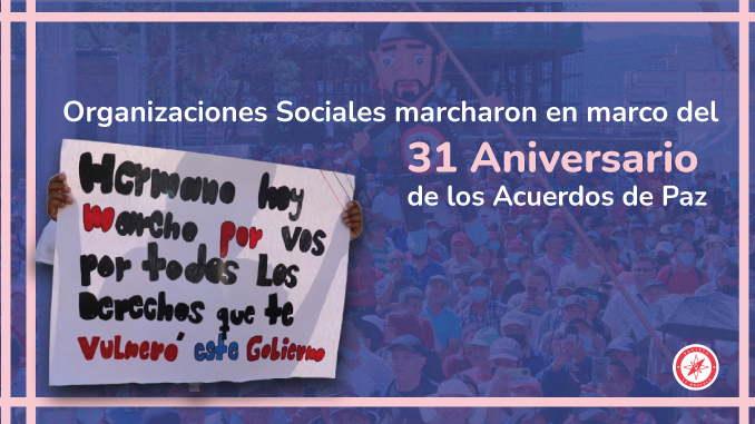 El pasado 15 de enero cientos de personas salieron a marchar en el marco del 31 Aniversario de los Acuerdos de Paz. Sindicatos, organizaciones de jóvenes, feministas, comunidades y otras expresiones organizativas marcharon hasta llegar al Centro Histórico de San Salvador, la demanda central es el respeto a los derechos humanos por parte del Gobierno actual.