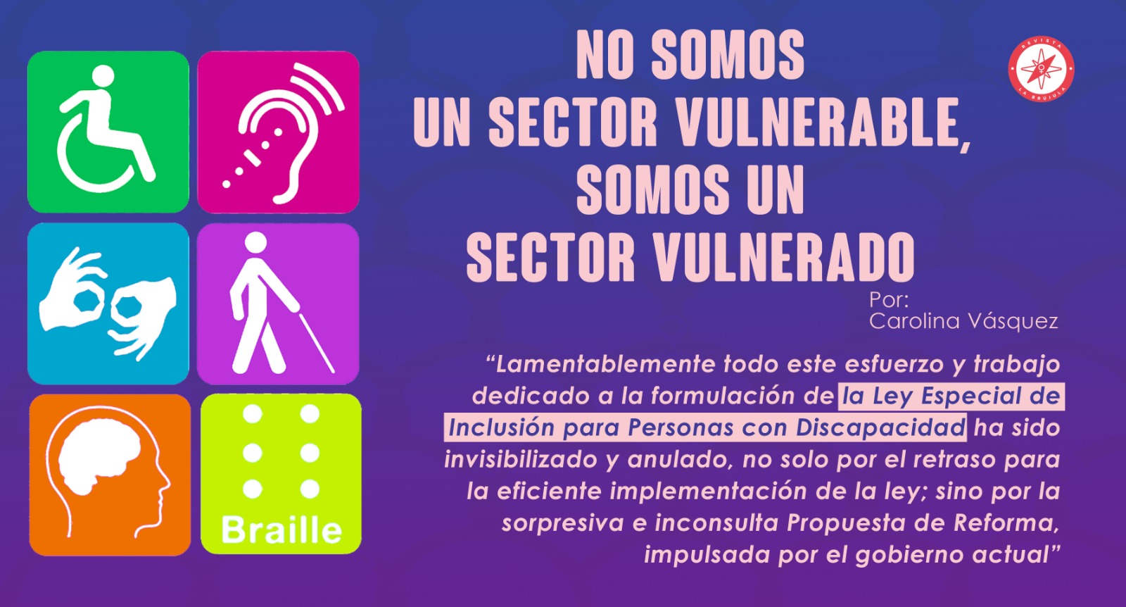 Son muchos los análisis que podemos sacar de estas reformas, pero creo que iniciaremos resaltando que hemos demostrado ser un sector propositivo, al cual lamentablemente el Gobierno actual no ha querido escuchar, tenemos capacidad técnica para aportar eficientemente en la generación de políticas e iniciativas públicas en pro de las personas con discapacidad, sabemos lo que necesitamos y cómo alcanzarlo, por lo tanto no somos un sector vulnerable; sino vulnerado por aquellos que se niegan a escuchar nuestra voz y aceptar nuestros aportes.