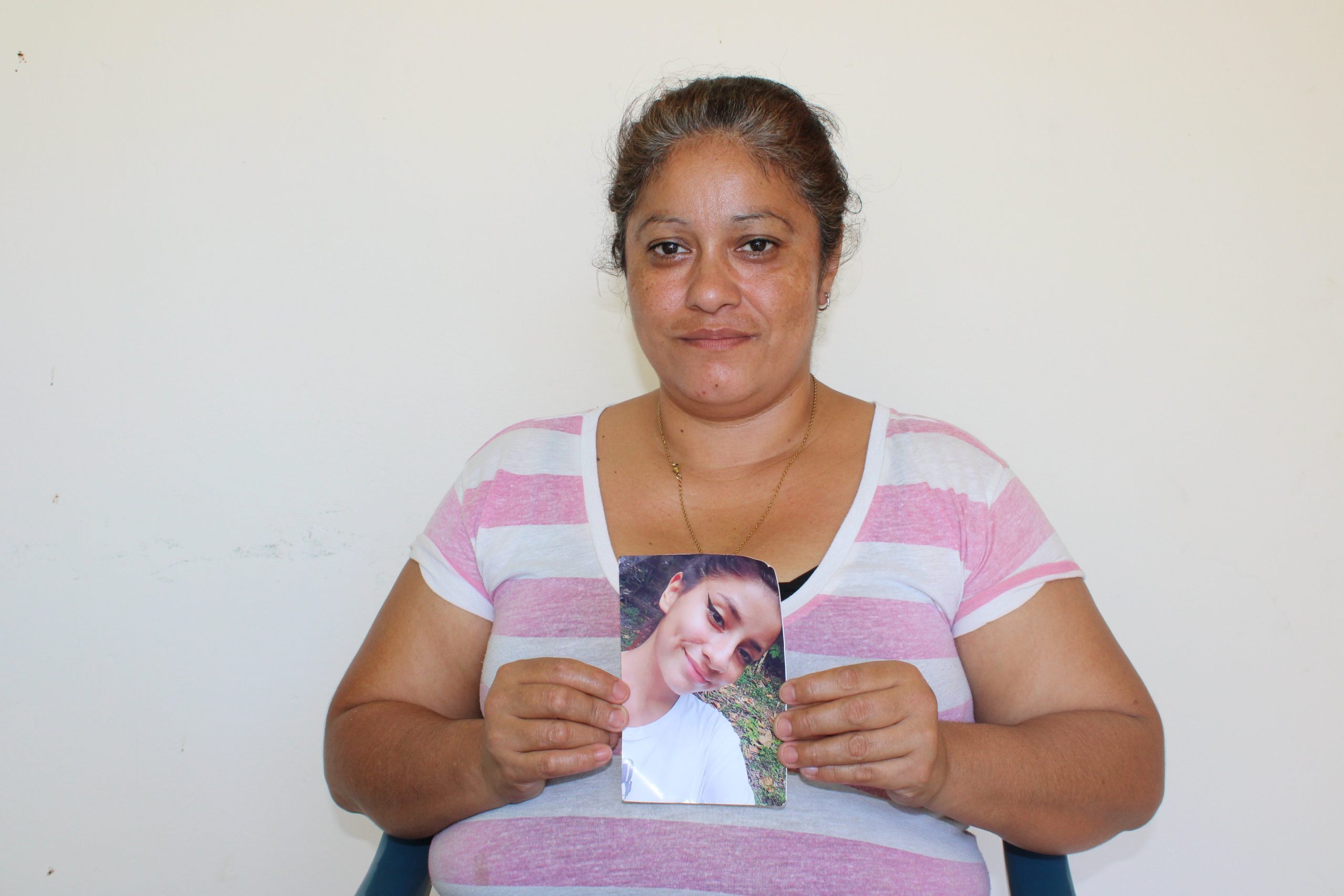 Verónica fue capturada el 11 de marzo bajo el régimen de excepción. Ella es madre buscadora y quien ha asumido el cuidado de su nieta desde que desaparecieron a su hija Paola. Su nieta y su familia la siguen esperando en casa.