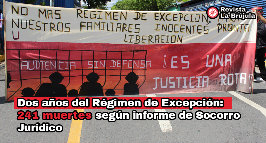 Socorro Jurídico presentó el Informe General de los 2 años del Régimen de Excepción en El Salvador. Hasta la fecha, se han registrado 241 personas fallecidas bajo custodia del Estado. Las mujeres continúan buscando información y asesoría legal para lograr la libertad de sus familiares capturados por el régimen y señalan el abandono estatal de la niñez.