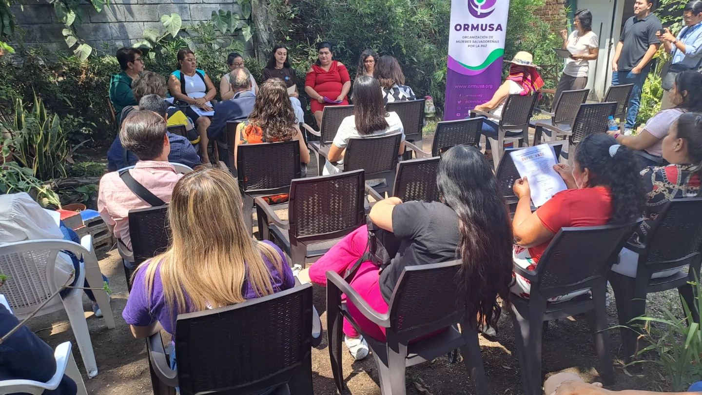 Claudia Lisseth Rodas, presidenta de la Asociación de Mujeres de San Pedro Masahuat, compartió su experiencia enfrentando los retrocesos y desafíos como defensora de derechos humanos en El Salvador. «Contar nuestra historia es fundamental para sensibilizar y capacitar a otras mujeres, para que puedan enfrentar todo tipo de violencia», señaló.