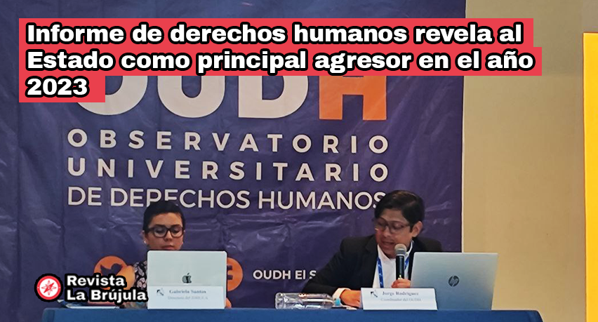 El Estado se ha convertido en principal autor de las agresiones de derechos humanos en el 2023, según el Observatorio Universitario de Derechos Humanos de la UCA, en el Informe anual 2023: El estado de los derechos humanos en El Salvador. Asimismo, mujeres, niñas y adolescentes continúan siendo las más afectadas en desplazamiento forzado interno y en violencia sexual.