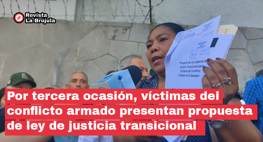 Organizaciones, colectivos de familiares y víctimas del conflicto armado entregaron a la Asamblea Legislativa el tercer anteproyecto de “Ley Especial de Justicia Transicional para Víctimas del Conflicto Armado en El Salvador». Hace 8 años, la Sala de lo Constitucional emitió una sentencia para que la Asamblea Legislativa elabore y apruebe una Ley de Reconciliación Nacional que garantice la justa reparación a las personas víctimas.