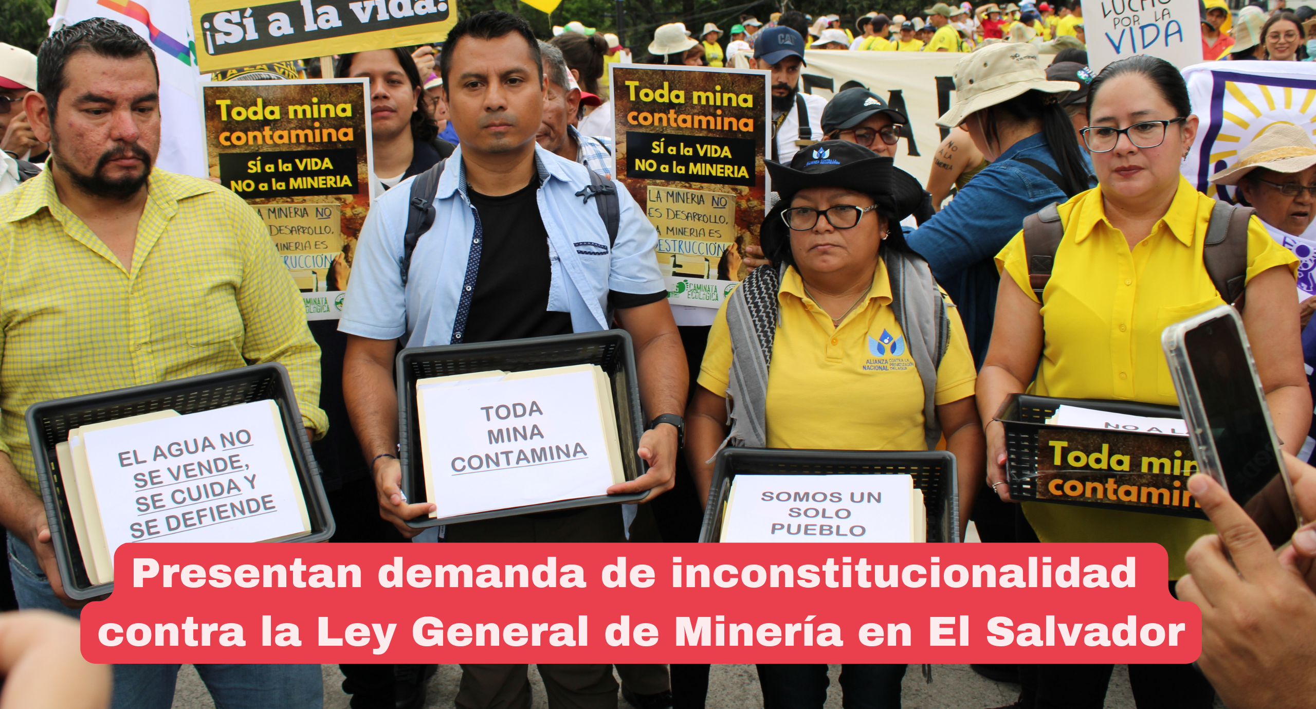 Una amplia alianza de organizaciones sociales, ambientales, religiosas y comunidades presentaron una demanda de inconstitucionalidad contra la Ley General de Minería Metálica ante la Sala de lo Constitucional de la Corte Suprema de Justicia. La acción es respaldada por más de 57 mil firmas ciudadanas que exigen la defensa del agua, la vida y los bienes naturales.