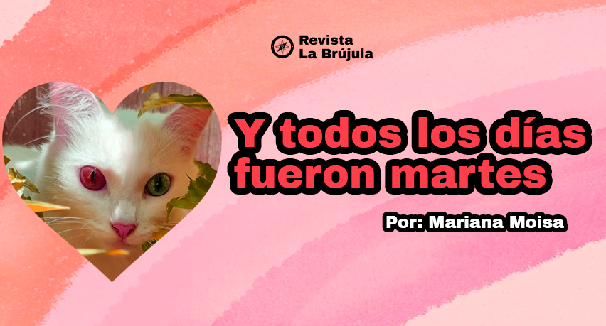 A los 46 años volvió a pensar en el conjuro, se dio cuenta que ya tenía una gata blanca de ojitos pardos, uno azul y el otro cafecito como los suyos, que cada martes se reía con una mujer que estaba llenita de música por todos lados, que le enseñó a comer bocas con cervezas, que no la llamó grandilocuente y le prestó atención a sus palabras, entonces se dio cuenta que el hechizo estaba consumado y que el buen amor es lesbiano y que a partir de ese momento, todos los días son martes.