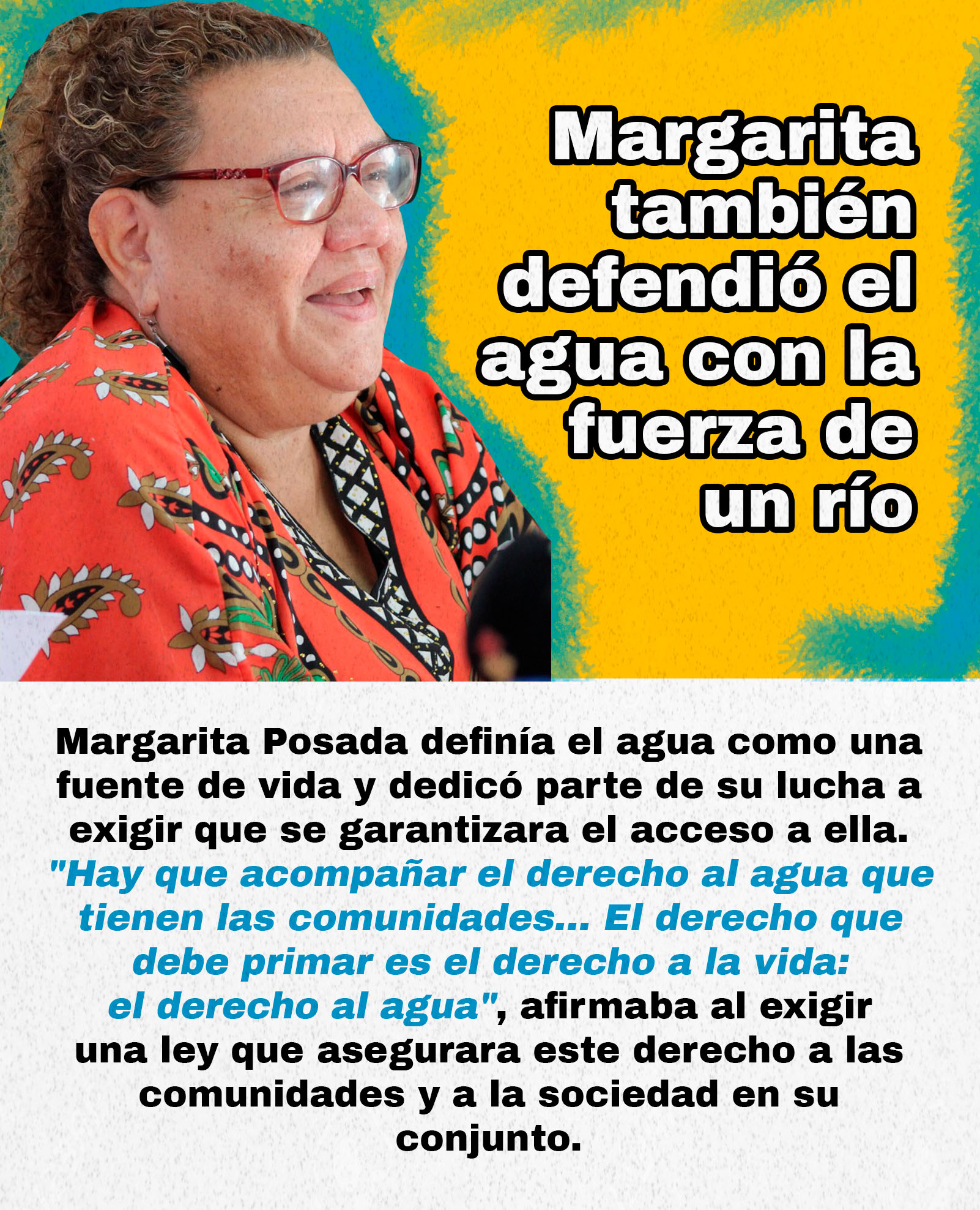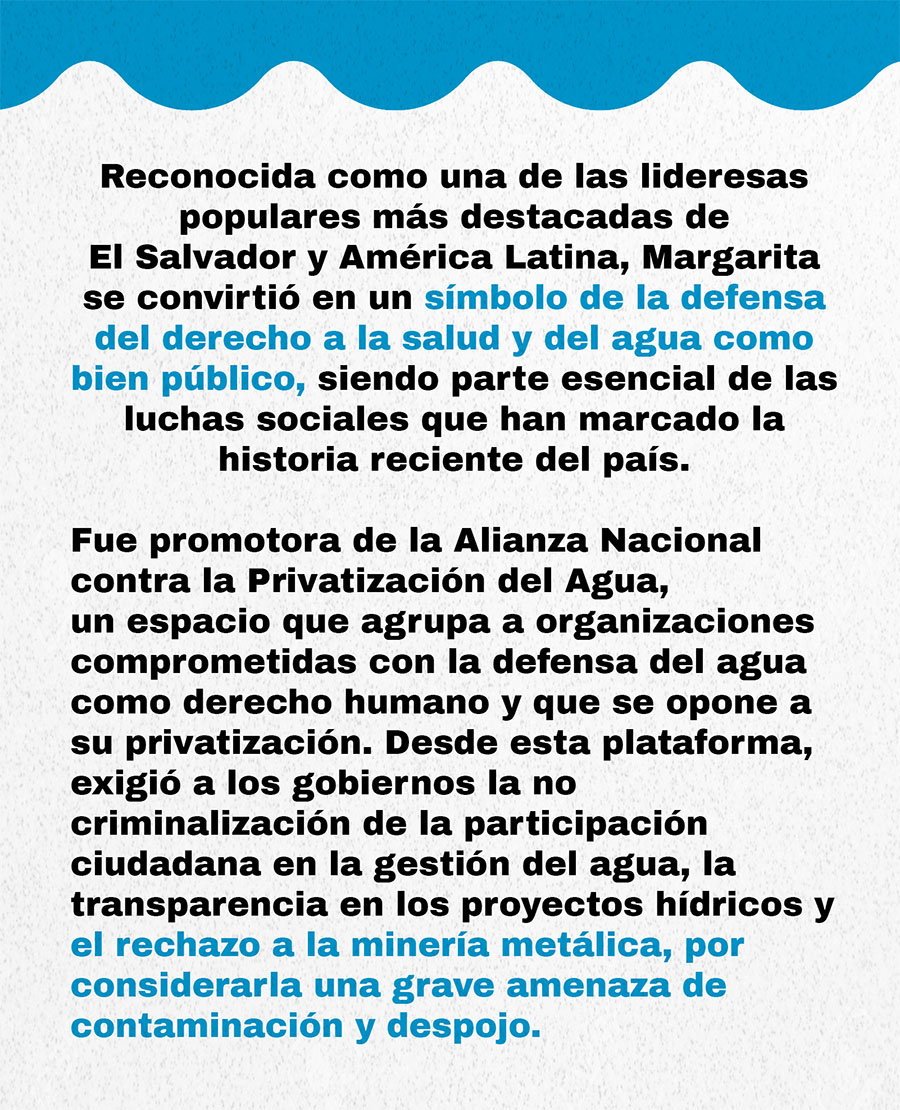 Mujeres como Margarita Posada, Vidalina Morales, María Cristina Rodríguez y Ebelia Menjívar han sido defensoras del agua, de la tierra y de la vida. En sus historias se refleja la memoria de muchas otras mujeres que, día tras día, sostienen la vida sin detenerse. Son ríos que no se ven en los mapas, pero que nutren las raíces de sus comunidades.