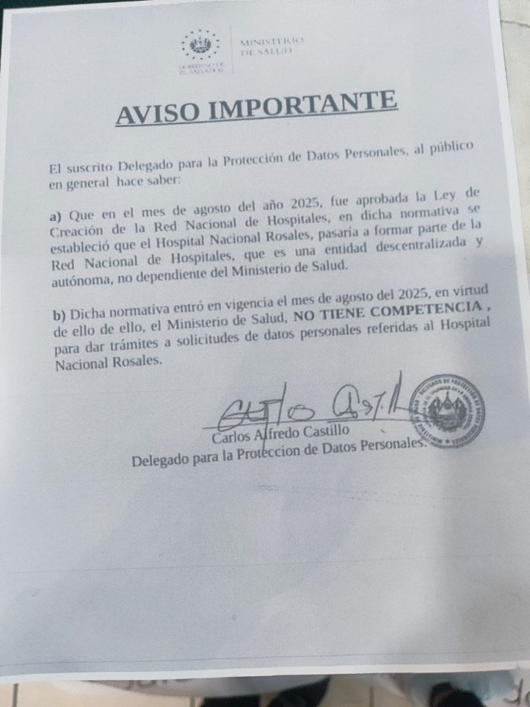 También explicaron que el Tribunal de Servicio Civil no acepta las denuncias de los despidos debido a que carecen de documentos. Los y las extrabajadoras han solicitado sus expedientes al Ministerio de Salud (MINSAL), pero su respuesta es que la institución no tiene competencia en el proceso ya que el Hospital Rosales depende de Casa Presidencial.
