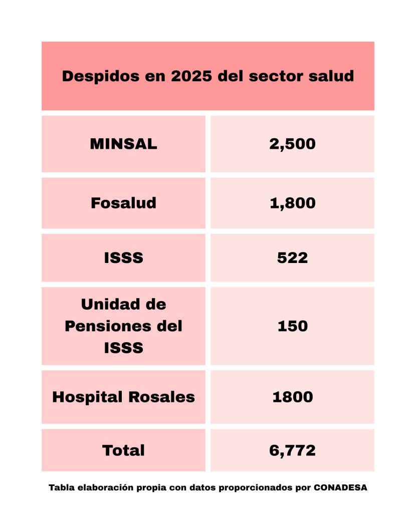 En 2025, un total de 6,772 trabajadores y trabajadoras del sector salud fueron despedidas o suprimieron sus plazas. Lo que afecta en la precarización laboral del personal de salud y en los servicios de atención de salud pública.
