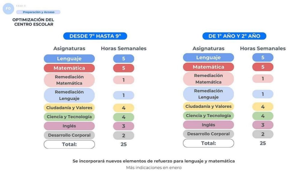Ante este panorama, el Ministerio de Educación ha impulsado modificaciones curriculares orientadas a reforzar lenguaje y matemáticas mediante talleres de recuperación y programas de lectura y escritura. No obstante, estas medidas han implicado la reducción de horas en áreas como artes y educación física, así como la eliminación de estudios sociales, sustituidos por la asignatura “ciudadanía y valores”.