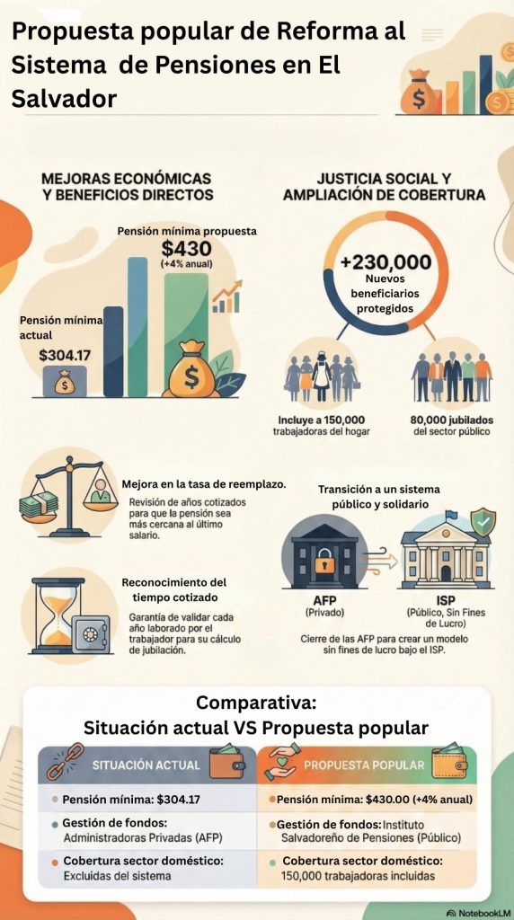 La propuesta popular de reforma integral a la Ley del Sistema de Pensiones plantea cerrar las Administradoras de Fondos de Pensiones (AFP) y crear un sistema público, solidario y sin fines de lucro, administrado por el Instituto Salvadoreño de Pensiones (ISP), según explicó el economista César Villalona durante una presentación pública de la iniciativa.